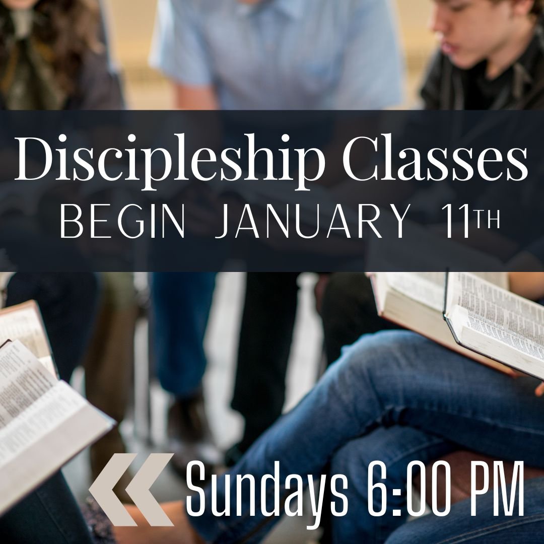 Discipleship Classes begin on Sunday, January 11th at 6:00 PM. No need to sign up. Just show up and join us! See Bart Starr for more information.